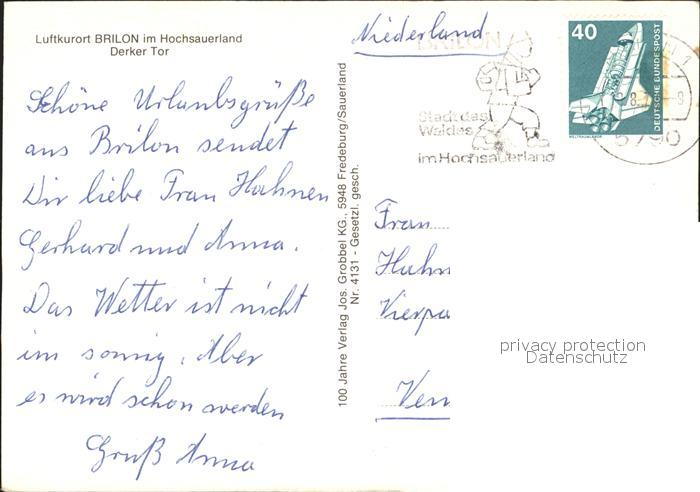 72232443 alte Postkarte Brilon Hochsauerlandkreis NRW Derker Tor postalisch gelaufen Erhaltung siehe scans KatCode: 11110005958012