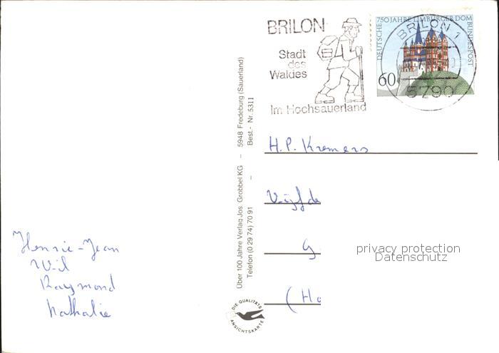 72481674 alte Postkarte Brilon Hochsauerlandkreis NRW Diemeltalsperre Schwimmbad Marktplatz postalisch gelaufen Erhaltung siehe scans KatCode: 11110005958012