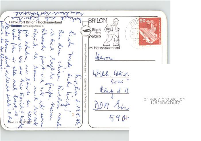 71920160 alte Postkarte Brilon Hochsauerlandkreis NRW Fliegeraufnahme Erholungszentrum postalisch gelaufen Erhaltung siehe scans KatCode: 11110005958012