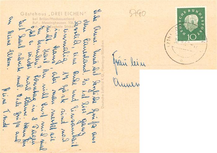 73908808 Brilon Hochsauerlandkreis NRW Gaestehaus Drei Eichen Fliegeraufnahme postalisch gelaufen Erhaltung siehe scans [FriedD77] alte Postkarte Frie Katcode 11110005958012