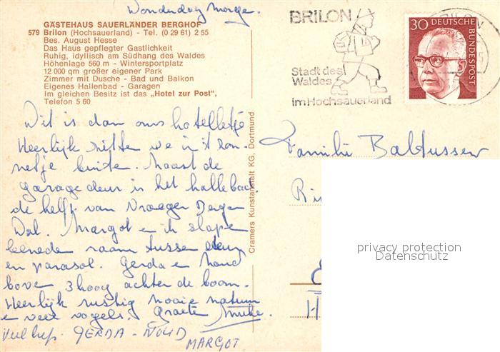72928581 alte Postkarte Brilon Hochsauerlandkreis NRW Gaestehaus Sauerlaender Berghof postalisch gelaufen Erhaltung siehe scans [WerneD78] KatCode: 11110005958012