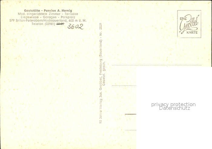 72326897 Brilon Hochsauerlandkreis NRW Gaststaette Hornig postalisch nicht gelaufen Erhaltung siehe scans KatCode: 11110005958012