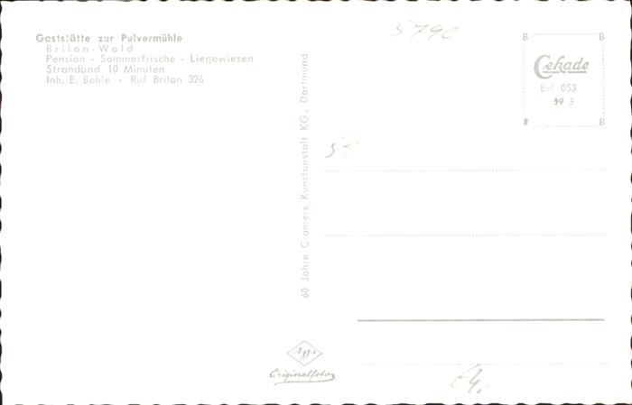 40926748 Brilon Hochsauerlandkreis NRW Gaststaette Pulvermuehle * postalisch nicht gelaufen Alte Ansichtskarte Postkarte Katcode 11110005958012