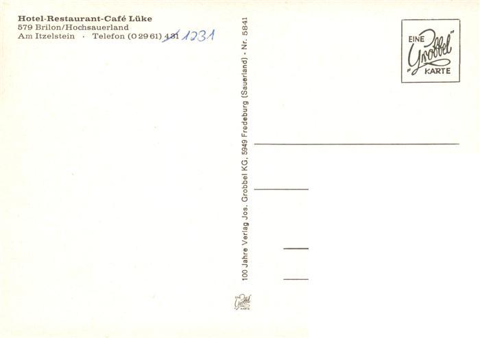 73896440 Brilon Hochsauerlandkreis NRW Hotel Restaurant Cafe Lueke postalisch nicht gelaufen Erhaltung siehe scans [WerneD78] Wern Katcode 11110005958012
