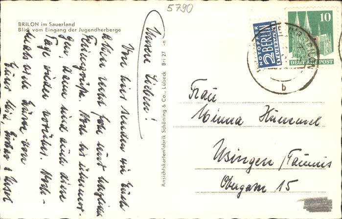 41274836 Brilon Hochsauerlandkreis NRW Jugendherberge postalisch gelaufen gute Erhaltung Alte Ansichtskarte Postkarte alte Postkarte Stef Katcode 11110005958012