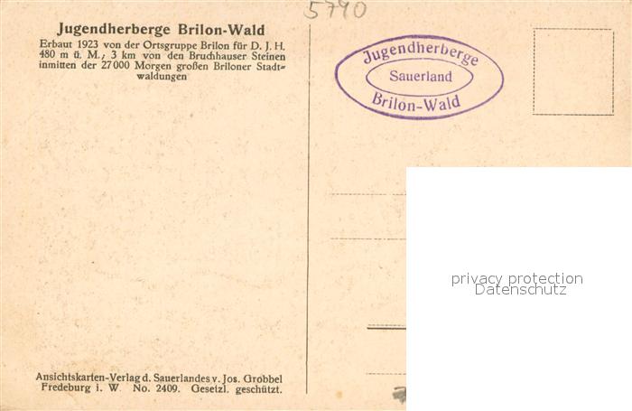 73749371 Brilon Hochsauerlandkreis NRW Jugendherberge Brilon Wald postalisch nicht gelaufen Erhaltung siehe scans [WerneD78] Wern Katcode 11110005958012