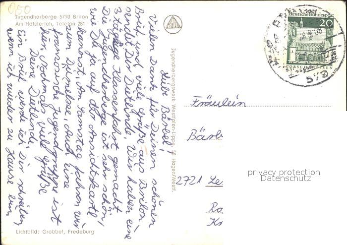71938981 alte Postkarte Brilon Hochsauerlandkreis NRW Jugendherberge postalisch gelaufen Erhaltung siehe scans KatCode: 11110005958012