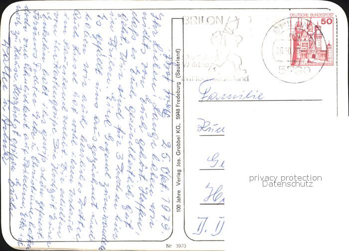 72541215 alte Postkarte Brilon Hochsauerlandkreis NRW Marktplatz Anlagen Kriegsblindenkurheim postalisch gelaufen Erhaltung siehe scans [LiesaD40 kt122box] KatCode: 11110005958012