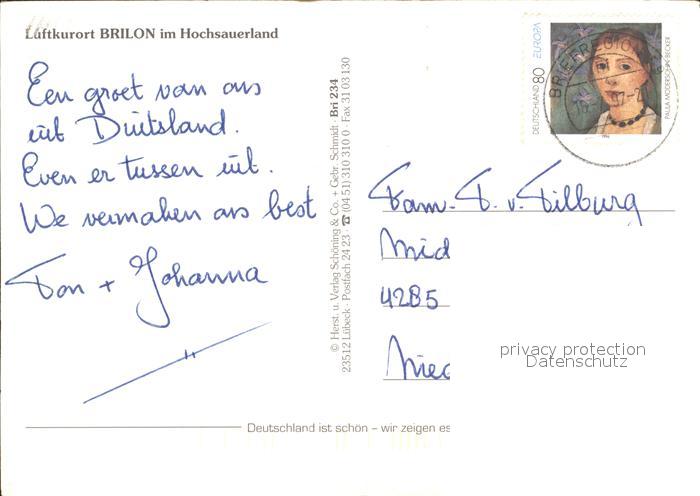 72255364 alte Postkarte Brilon Hochsauerlandkreis NRW Rathaus Bahnhofstrass Derker Tor Marktplatz Fachwerk postalisch gelaufen Erhaltung siehe scans KatCode: 11110005958012