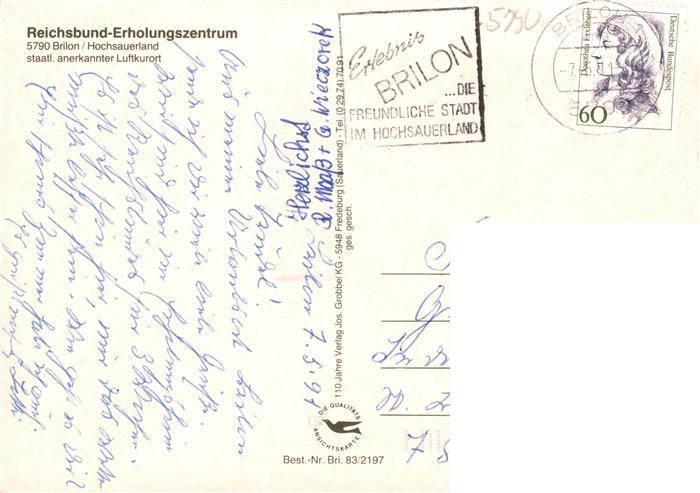 73942854 Brilon Hochsauerlandkreis NRW Reichsbund Erholungszentrum postalisch gelaufen Erhaltung siehe scans [WerneD78] alte Postkarte Wern Katcode 11110005958012