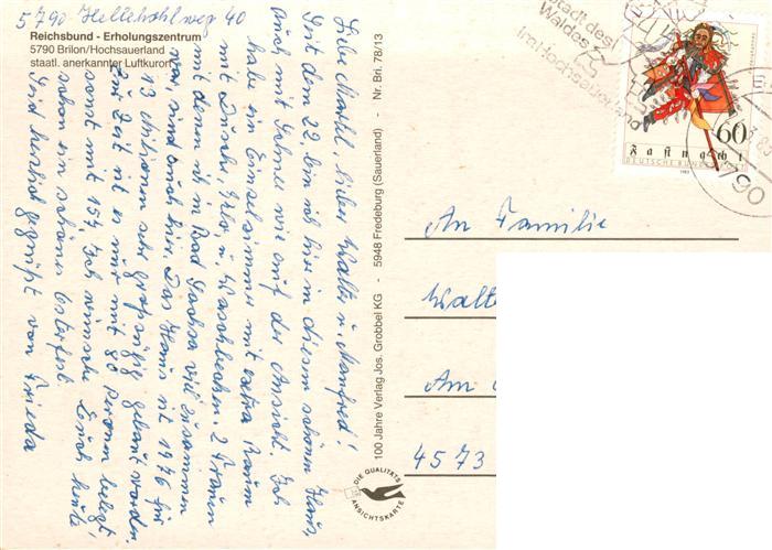 73880657 Brilon Hochsauerlandkreis NRW Reichsbund Erholungszentrum postalisch gelaufen Erhaltung siehe scans [WerneD78] alte Postkarte Wern Katcode 11110005958012