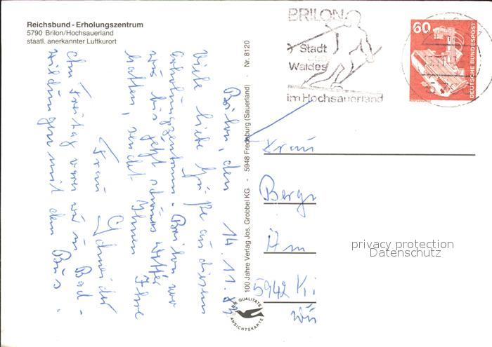 71908648 alte Postkarte Brilon Hochsauerlandkreis NRW Reichsbund Erholungszentrum postalisch gelaufen Erhaltung siehe scans KatCode: 11110005958012