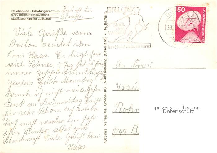 73837781 Brilon Hochsauerlandkreis NRW Reichsbund Erholungszentrum Foyer Winterpanorama Hallenbad postalisch gelaufen Erhaltung siehe scans [WerneD78] alte Postkarte Wern Katcode 11110005958012