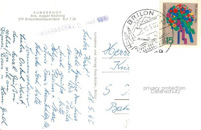 73779518 Brilon Hochsauerlandkreis NRW Sunderhof Blumenwiese postalisch gelaufen Erhaltung siehe scans [FriedD77] alte Postkarte Frie Katcode 11110005958012