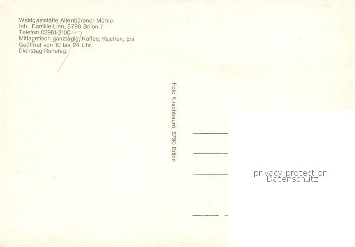 73865910 Brilon Hochsauerlandkreis NRW Waldgaststaette Altenbuerener Muehle postalisch nicht gelaufen Erhaltung siehe scans [FriedD77] Frie Katcode 11110005958012
