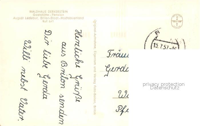 73805336 Brilon Hochsauerlandkreis NRW Waldhaus Derkerstein Panorama postalisch gelaufen Erhaltung siehe scans [WerneD78] alte Postkarte Wern Katcode 11110005958012