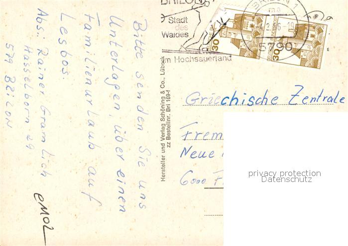 73181323 alte Postkarte Brilon Ortsansicht mit Kirche Strassenpartie Hochhaus Platz Brunnen postalisch gelaufen Erhaltung siehe scans [FriedD77] KatCode: 11110005958012