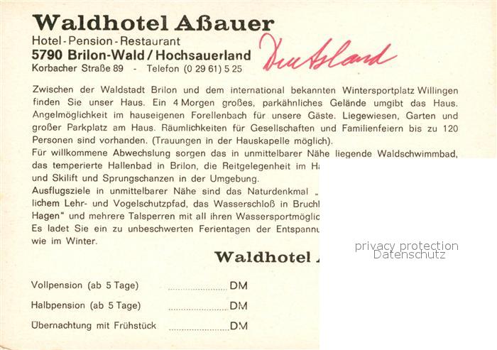 73308159 Brilon-Wald Fliegeraufnahme Waldhotel Assauer Freibad postalisch nicht gelaufen Erhaltung siehe scans [LiesaD40] KatCode: 11110005958012