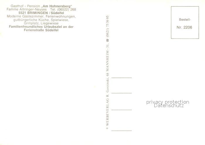 73087814 Brimingen Gasthof Pension Am Hohnersberg postalisch nicht gelaufen Erhaltung siehe scans [KathaD81] KatCode: 11110007232021