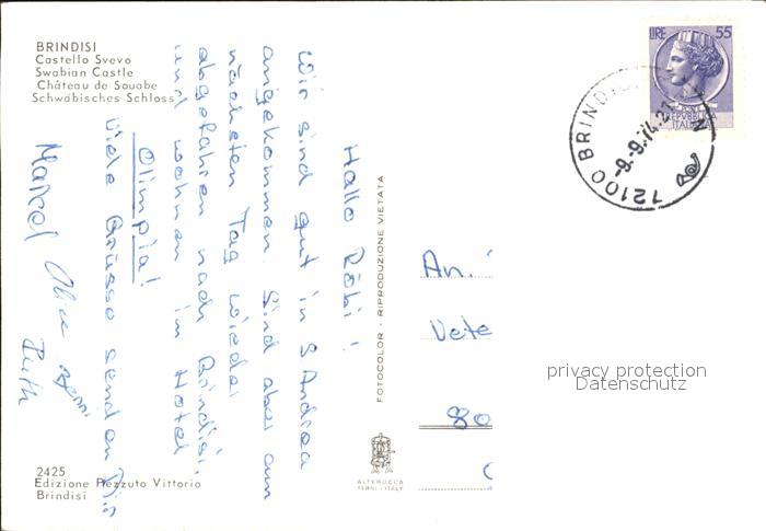 old postcard Brindisi Schwaebisches Schloss postalisch gelaufen Erhaltung siehe scans