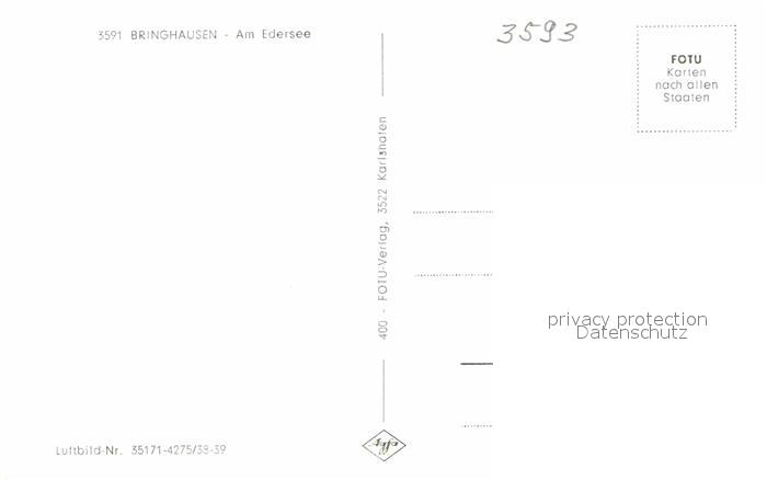 72813758 Bringhausen Fliegeraufnahme Edersee postalisch nicht gelaufen Erhaltung siehe scans [AndreD76] KatCode: 11110006635009
