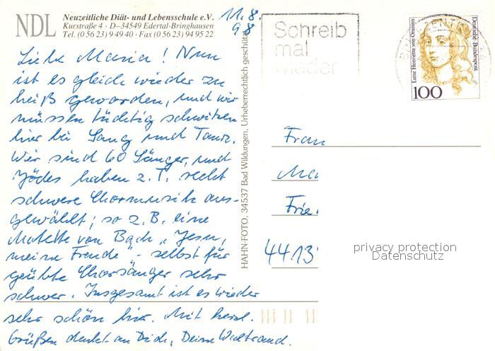 73651654 alte Postkarte Bringhausen Neuzeitliche Diaet- und Lebensschule e.V. Speiseraum Gartenterrasse postalisch gelaufen Erhaltung siehe scans [FriedD77] KatCode: 11110006635009