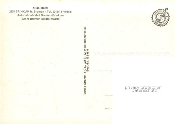 73614965 Brinkum Bremen Atlas Motel Gastraeume Bar Zimmer postalisch nicht gelaufen Erhaltung siehe scans [WerneD78] KatCode: 11110003251037