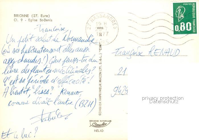 carte postale Brionne Eglise Saint Denis postalisch gelaufen Erhaltung siehe scans [FriedD77]