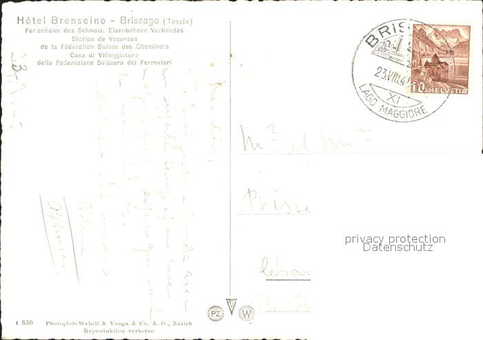 11642420 alte Postkarte Brissago TI Hotel Brenscino postalisch gelaufen Erhaltung siehe scans KatCode: 11470210655916