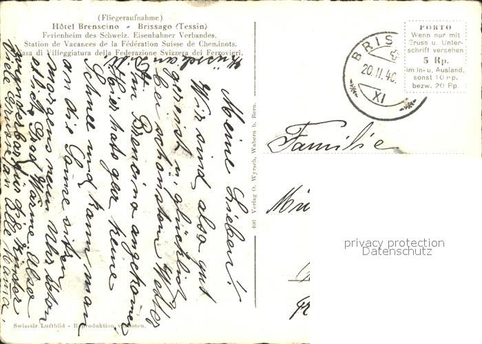 11643862 alte Postkarte Brissago TI Hotel Brenscino postalisch gelaufen Erhaltung siehe scans KatCode: 11470210655916
