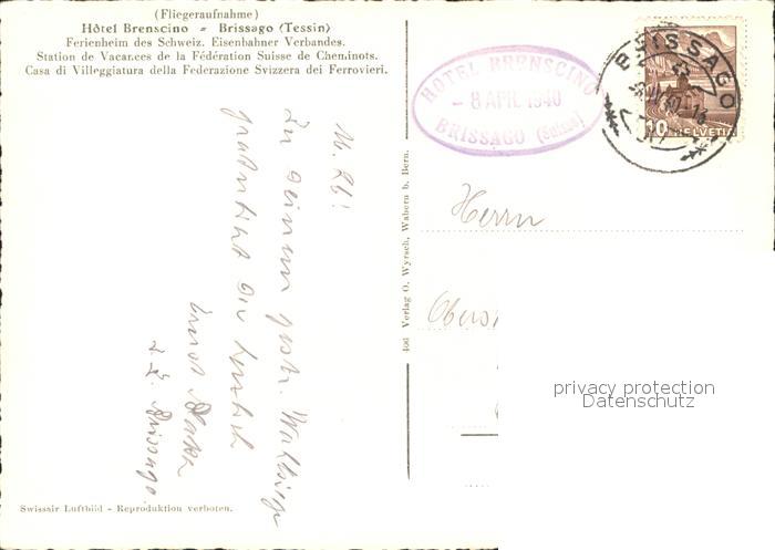11655174 alte Postkarte Brissago TI Hotel Brenscino Fliegeraufnahme postalisch gelaufen Erhaltung siehe scans KatCode: 11470210655916