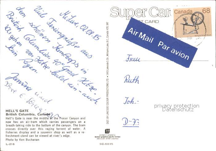 old postcard British Columbia Hell Gate postalisch gelaufen Erhaltung siehe scans