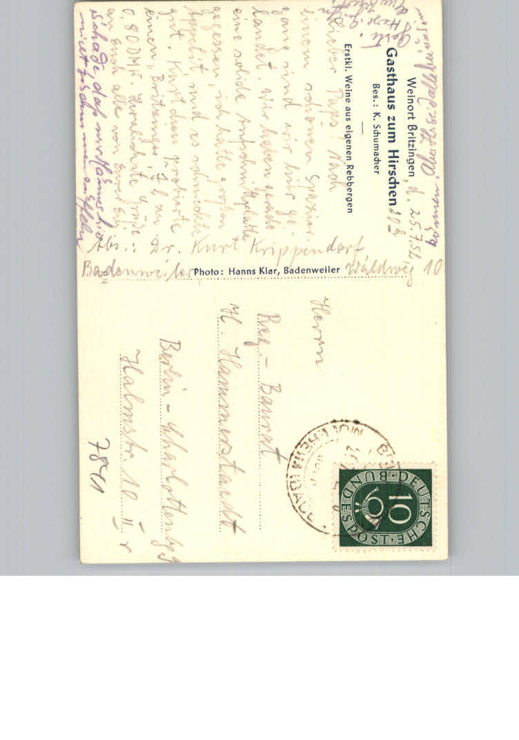 31154388 Britzingen Gasthaus zum Hirschen postalisch nicht gelaufen KatCode: 11110008315074