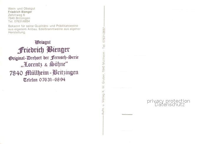73722307 Britzingen Wein- und Obstgut Friedrich Bienger postalisch nicht gelaufen Erhaltung siehe scans [LiesaD40] KatCode: 11110008315074