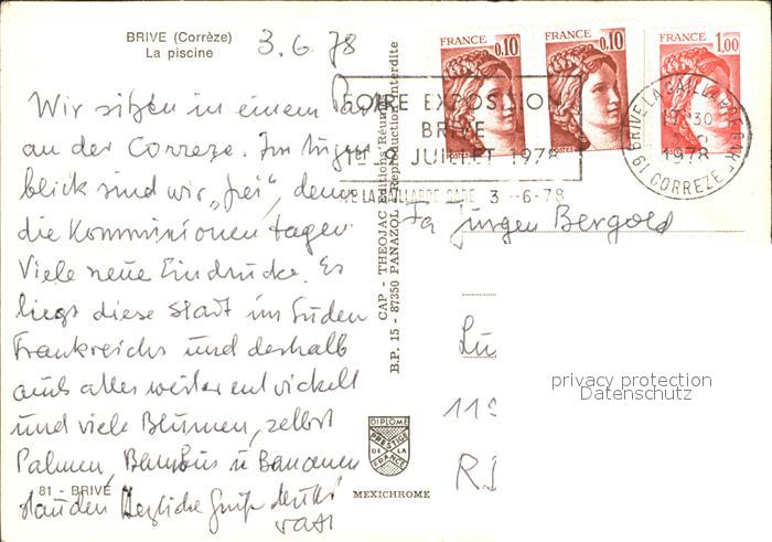 12440152 carte postale Brive Correze La piscine vue aerienne postalisch gelaufen Erhaltung siehe scans KatCode: 11170019219062