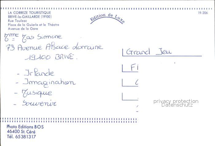 12230089 Brive Correze Rue Toulzac Place de la Guierle Theatre Avenue de la Gare KatCode 11170019219062