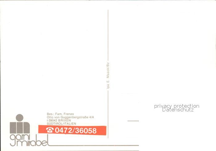 Brixen Suedtirol Garni Mirabel postalisch nicht gelaufen Erhaltung siehe scans