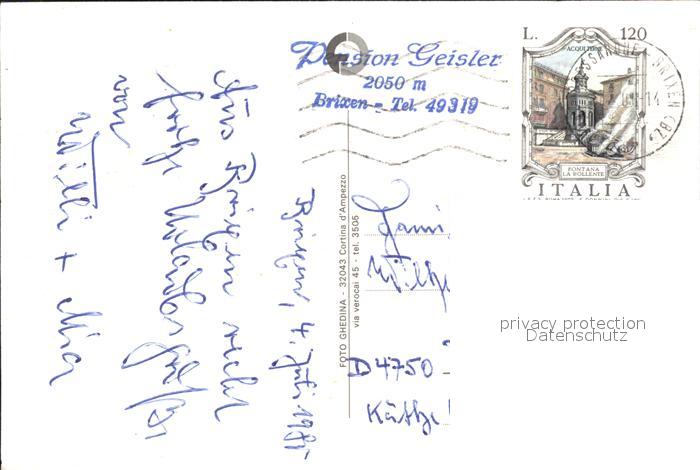 old postcard Brixen Suedtirol Gasthof Pension Geisler Plose postalisch gelaufen Erhaltung siehe scans