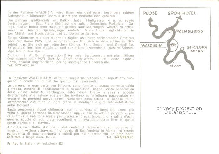 Brixen Suedtirol Gasthof Waldheim Pension Gastraum Sessellift postalisch nicht gelaufen Werbekarte (keine Postkarte) Erhaltung siehe scans
