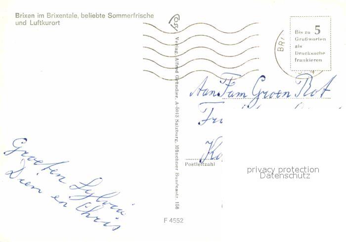 72824947 alte Postkarte Brixen Thale postalisch gelaufen Erhaltung siehe scans [LiesaD40] KatCode: 11390335070402