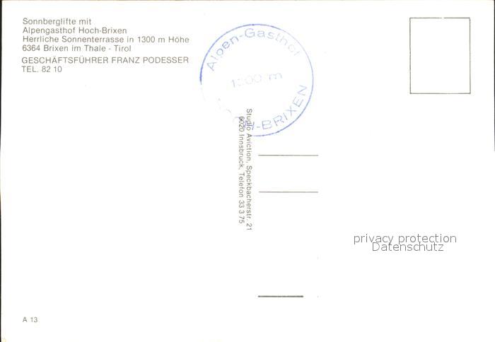 72241912 Brixen Thale Alpengasthof Hoch-Brixen postalisch nicht gelaufen Erhaltung siehe scans KatCode: 11390335070402