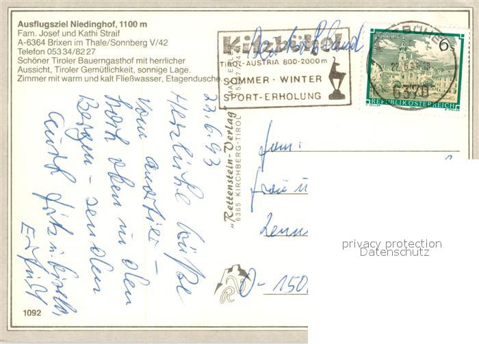 73363096 alte Postkarte Brixen Thale Ausflugsziel Niedinghof Bauerngasthof postalisch gelaufen Erhaltung siehe scans [FriedD77] KatCode: 11390335070402