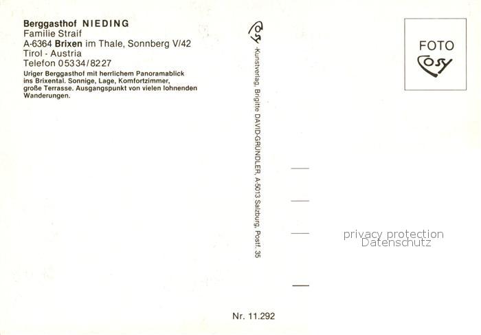 73311904 Brixen Thale Berggasthof Nieding postalisch nicht gelaufen Erhaltung siehe scans [KathaD81] KatCode: 11390335070402