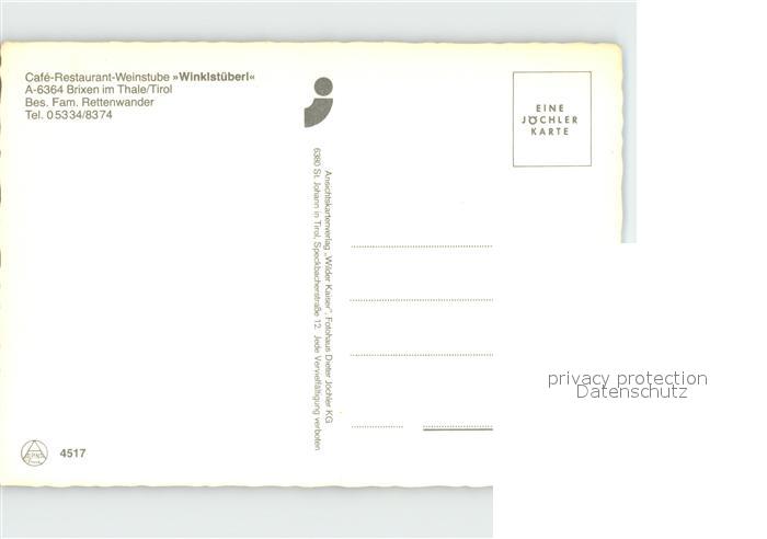 72921961 Brixen Thale Cafe Restaurant Winklstueberl postalisch nicht gelaufen Erhaltung siehe scans [NatalD47] KatCode: 11390335070402