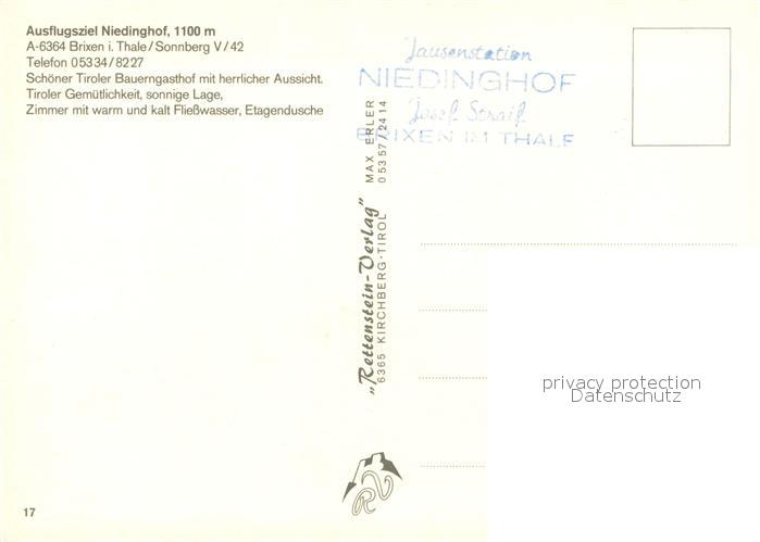 73590875 Brixen Thale Jausenstation Niedinghof postalisch nicht gelaufen Erhaltung siehe scans [KathaD81] KatCode: 11390335070402