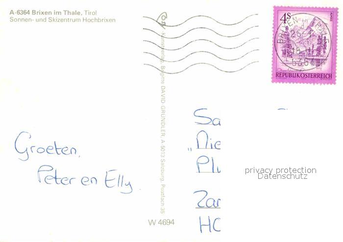 72870422 alte Postkarte Brixen Thale Skigebiet Hochbrixen postalisch gelaufen Erhaltung siehe scans [LiesaD40] KatCode: 11390335070402