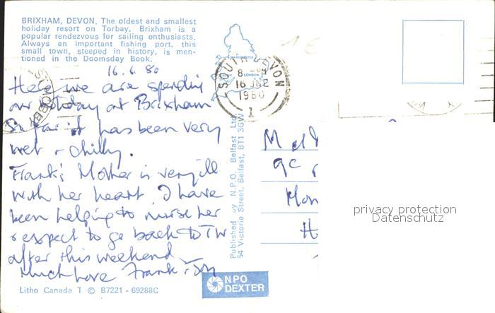 old postcard Brixham Hafen postalisch gelaufen Erhaltung siehe scans