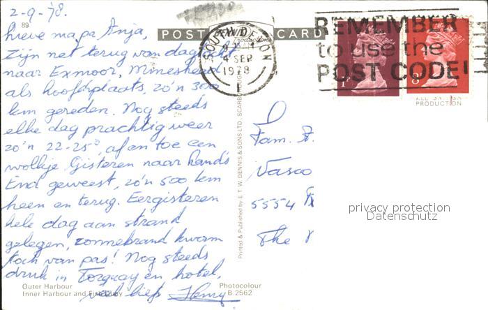 old postcard Brixham Harbour Hafen postalisch gelaufen Erhaltung siehe scans