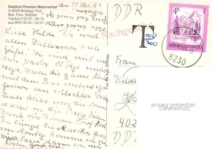 72917274 alte Postkarte Brixlegg Tirol Gasthaus Pension Mehrnerhof postalisch gelaufen Erhaltung siehe scans [KathaD81] KatCode: 11390335070506