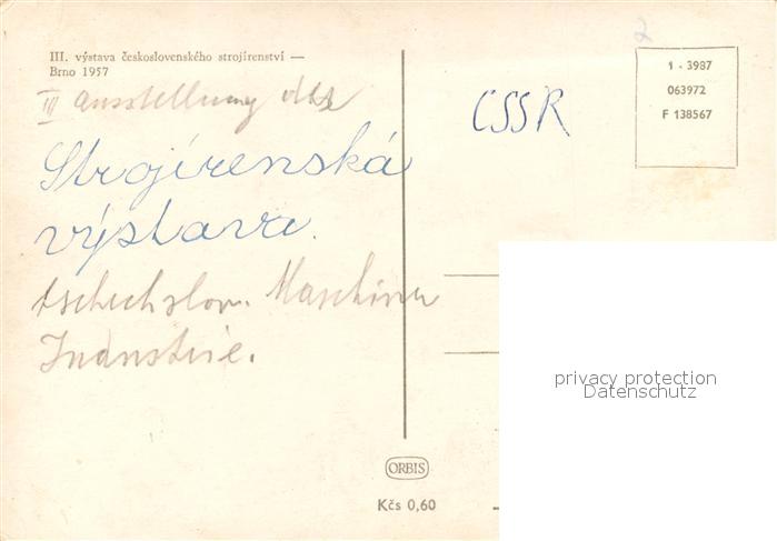 13638644 Brno Bruenn Ausstellung Tschechische Ingenieurtechnik Maschinen postalisch nicht gelaufen Erhaltung siehe scans [FriedD77] KatCode: 11520